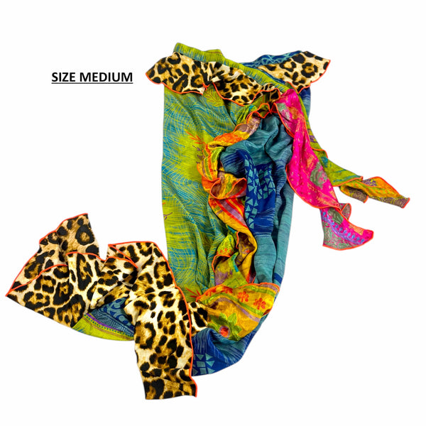 Maxi tie skirt with ruffles at open side, and additional waist frill detail
