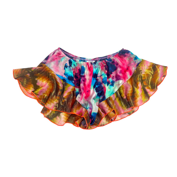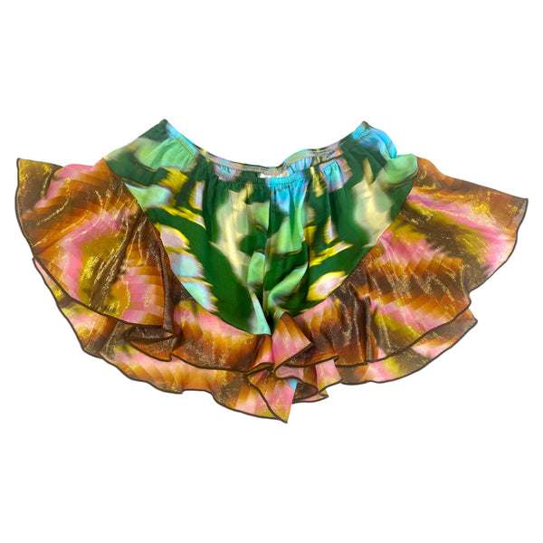 Full, low waisted shorts with elasticated waist and frill detail inserted on legs.